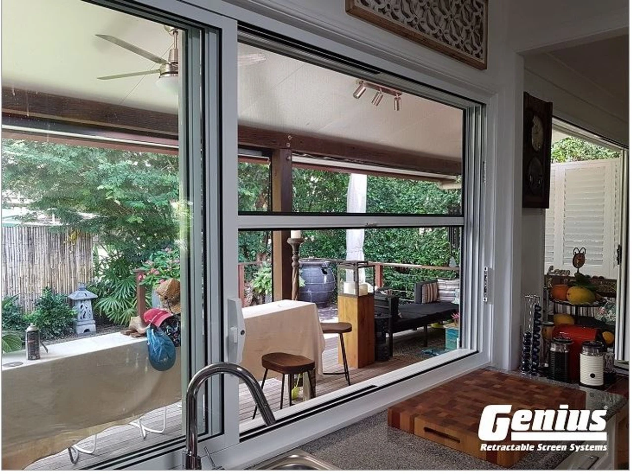 Genius® retractable window screens are custom-made and are available to fit practically every type and size of window — including single and double hung as well as slider windows. When not in use, the retractable window screens roll-up like a window shade into a protective cassette, giving an unobstructed view and protecting the screen mesh from the sun and other weather elements when not in use. Retractable window screens are easy-to-install, and come with a complete hardware package and instructions.