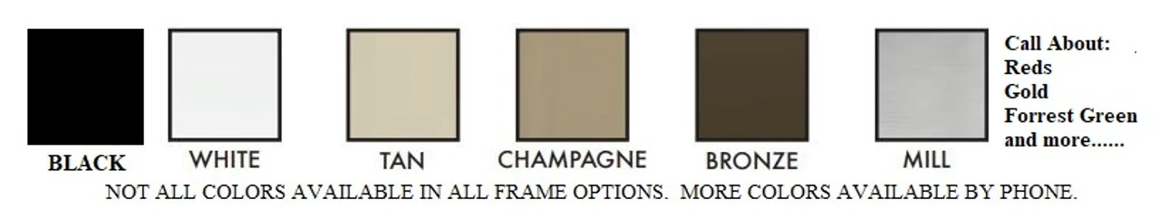 - Frame color choices: white, bronze, silver, almond, green, beige, black, and silver (mill)